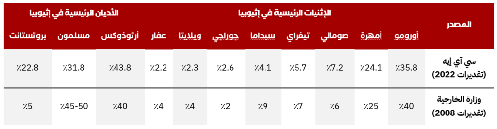 جدول (1): تباين إحصاءات التوزيع الإثني والديني في إثيوبيا وفق المصادر الأمريكية في ظل غياب إحصاء حكومي إثيوبي رسمي