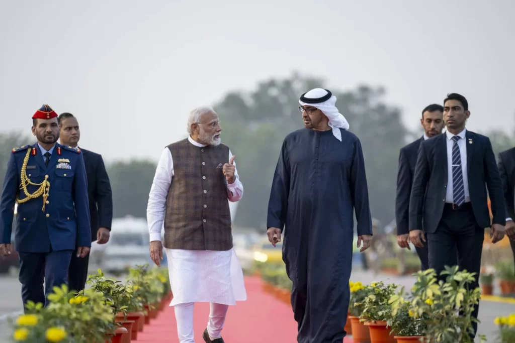 أجرى الرئيس الإماراتي محمد بن زايد زيارة إلى الهند، في 19 يناير/ كانون الثاني 2026، إذ وقع مع رئيس الوزراء ناريندرا مودي 12 اتفاقية وخطاب نوايا تهدف إلى مضاعفة حجم التبادل التجاري الثنائي إلى 200 مليار دولار بحلول 2032، كما شهدا توقيع خطاب نوايا لتدشين شراكة دفاعية استراتيجية بين البلدين.