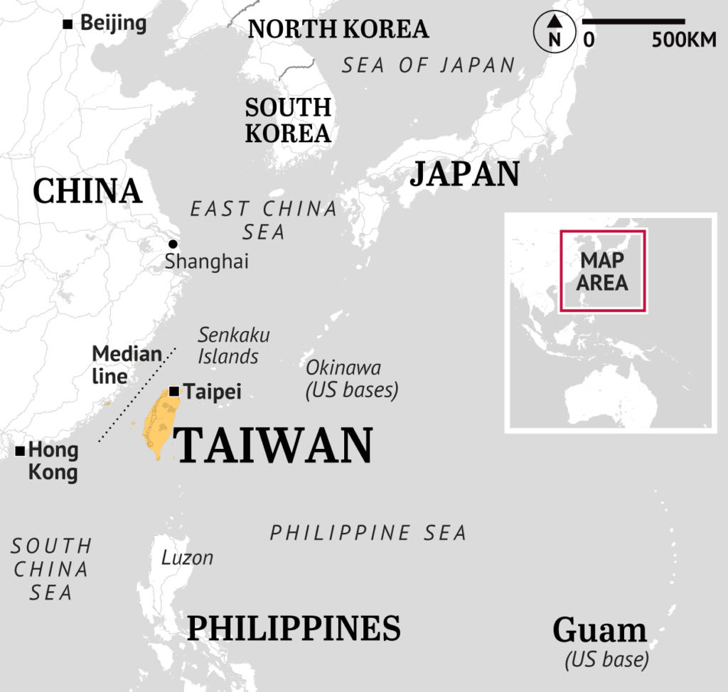 - يمتد الصراع بين الصين وجزيرة تايوان إلى مساحة أخرى تتقاطع مع مصالح أمريكية وغربية تتعلق بمضيق تايوان الذي يفصل بين الجزيرة والصين ويربط بحر الصين الجنوبي بالمحيط الهادئ، ويمثل المضيق أهمية استراتيجية للولايات المتحدة باعتباره أحد نقاط التحكم في بحر الصين الجنوبي، ويمكن هنا فهم الأهمية التي توليها الولايات المتحدة لجزيرة تايوان والتي جعلتها تكشف مؤخرا عن تواجدها العسكري على الجزيرة لتدريب الجيش التايواني ضد أي هجوم صيني محتمل.