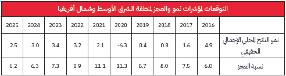 • في حين أن مؤشرات النمو الاقتصادي سوف ترتفع مقارنة بعام 2019، يبدو أن حجم اقتصادات المنطقة في عام 2021 سيظل أقل بكثير من مستويات ما قبل Covid-19. وهذا يعني أيضًا إمكانية أكبر نسبيًا للاضطرابات الاجتماعية، لأنه حتى في حالة حدوث انتعاش اقتصادي، فإنه سيكون متفاوتًا للغاية، وستظل قطاعات كبيرة من السكان تتأثر سلبًا بمستويات البطالة المرتفعة ونمو الأجور الضعيف وعدم اليقين الاقتصادي. وستؤثر سياسات التقشف وتخفيض الإنفاق بشكل أكبر على الفئات الضعيفة، التي ستشعر بمزيد من التعب نتيجة الإغلاقات أو/و ارتفاع التضخم. كل ذلك سيزيد احتمالية عدم اليقين السياسي في البلدان التي تتجه إلى صناديق الاقتراع، خاصة إيران والعراق، أو تواجه فيها الحكومة موقفا هشا مثل لبنان وتونس والجزائر والسودان والأردن.